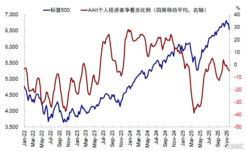 图表:截至2025年11月20日AAII个人投资者净看多比例已经回落至-5%左右