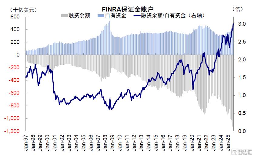 图表:FINRA统计的融资余额隐含杠杆水平截至2025年10月底的隐含杠杆水平已经突破3