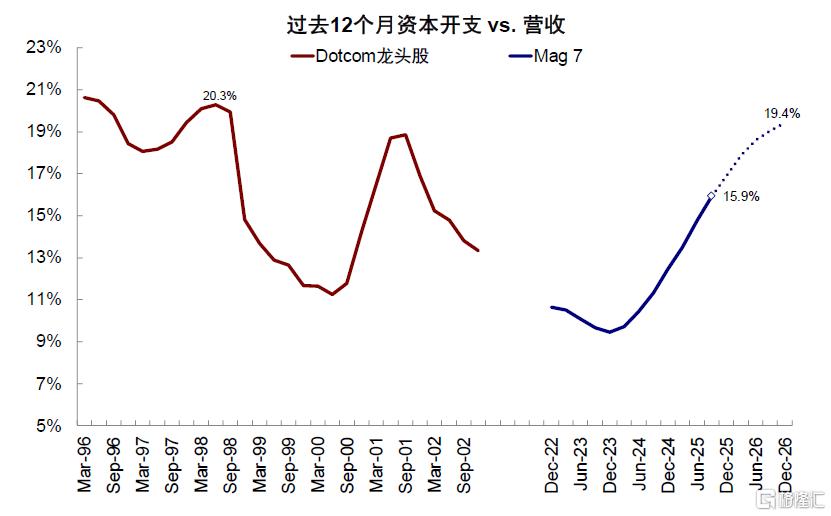 图表:过去12个月资本开支与营收的比例为16%,市场预期将持续抬升至2026年底的19%