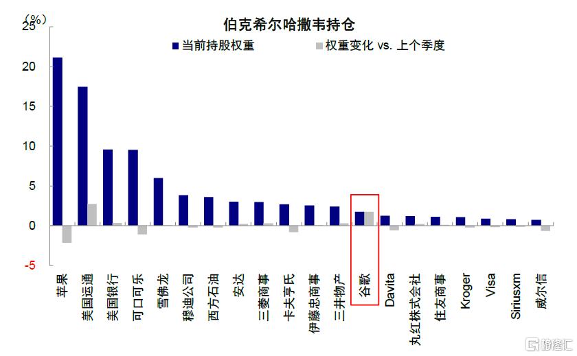 图表:伯克希尔哈撒韦三季度首次建仓谷歌,使之成为其前二十大持仓股之一