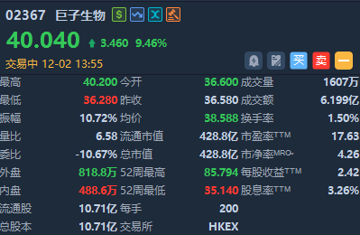巨子生物午后拉升,截至发稿,涨超近10%,成交额超6亿港元。