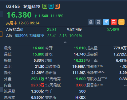 龙蟠科技盘初涨逾11%,成交额超1.2亿港元。