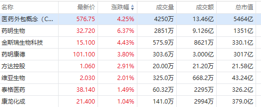 CRO概念股午后快速拉升,截至发稿,药明生物大涨6%,金斯瑞生物科技涨超4%,药明康德涨近4%,泰格医药、康龙化成涨超1%。