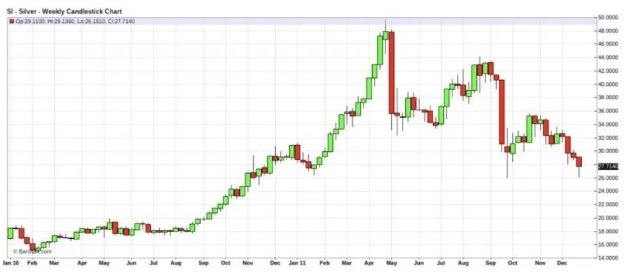 从2010年底开始,白银再次反弹,在八个月内触及48美元。但同样,它很快回吐了涨幅,在短短几个月内跌至26美元。