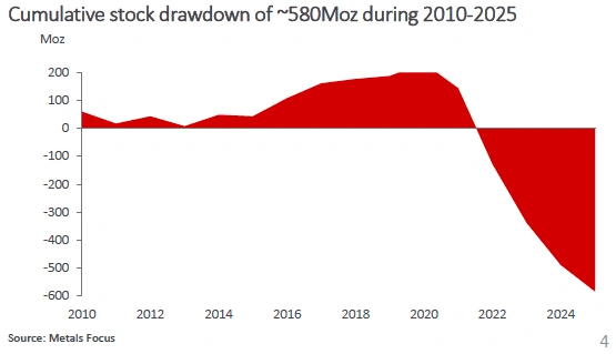 自2010年以来,白银市场已累积了超过5.8亿盎司的供应赤字。