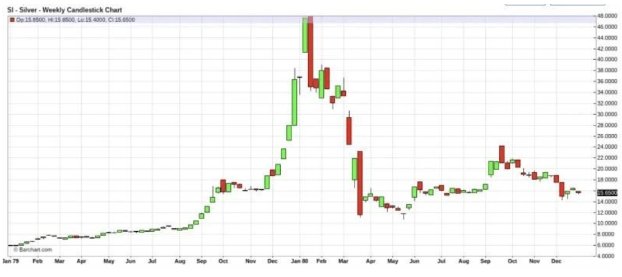 1980年,银价在短短四个月内从每盎司10美元涨至48美元。两个月后,它又回到了10美元。