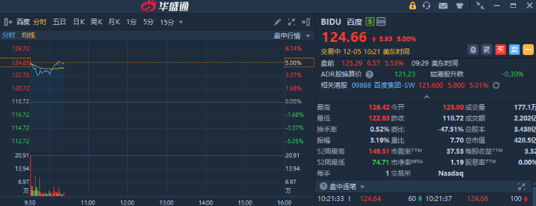 华盛资讯12月5日讯,热门中概股普遍上涨,百度涨约5%,消息称子公司昆仑芯计划赴港IPO,估值近30亿美元。