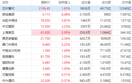 芯片股多数走高,截至发稿,华虹半导体涨近4%,中芯国际、上海复旦涨约3%,黑芝麻智能、晶门半导体涨超2%,英诺赛科涨超1%,中兴通讯跟涨。
