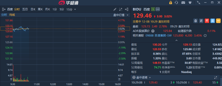 华盛资讯12月8日讯,热门中概股涨跌不一,百度涨超3%,此前获花旗看多,该行对百度开启为期90天的正面催化剂观察。