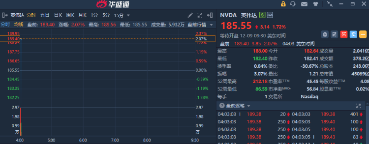 华盛资讯12月8日讯,英伟达盘前涨超2%;消息面上,此前特朗普批准英伟达向中国出售英伟达H200人工智能芯片。
