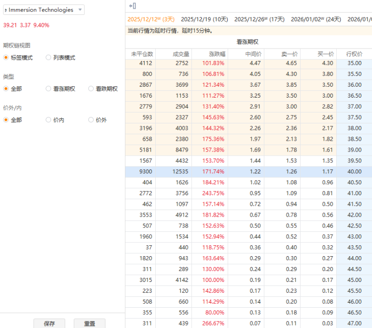 其中一看涨期权(BMNR_251212_C_40.0)交易量达12535张,该合约行权价为40.0美元,行权日在2025-12-12,该张期权涨171.74%。