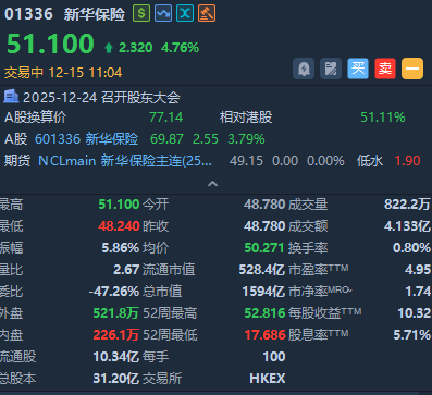 内险股继续走高,截至发稿,新华保险涨超4%,中国太平涨超3%,中国平安涨超3%,创近4年来新高;友邦保险涨超2%。