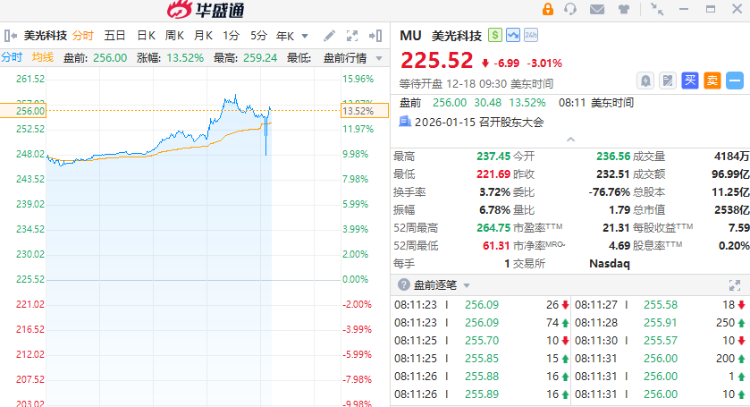 美光科技盘前大涨超13%,季度收入、利润大增超预期;带动存储概念股集体走强,闪迪 $SNDK 盘前涨超4%,希捷科技涨超2%。