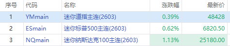 三大期指周四盘前迅速拉升,截至发稿,纳指期货 $NQmain 涨1.13%,标普500期货 $ESmain 涨0.62%,道指期货 $YMmain 涨0.39%。