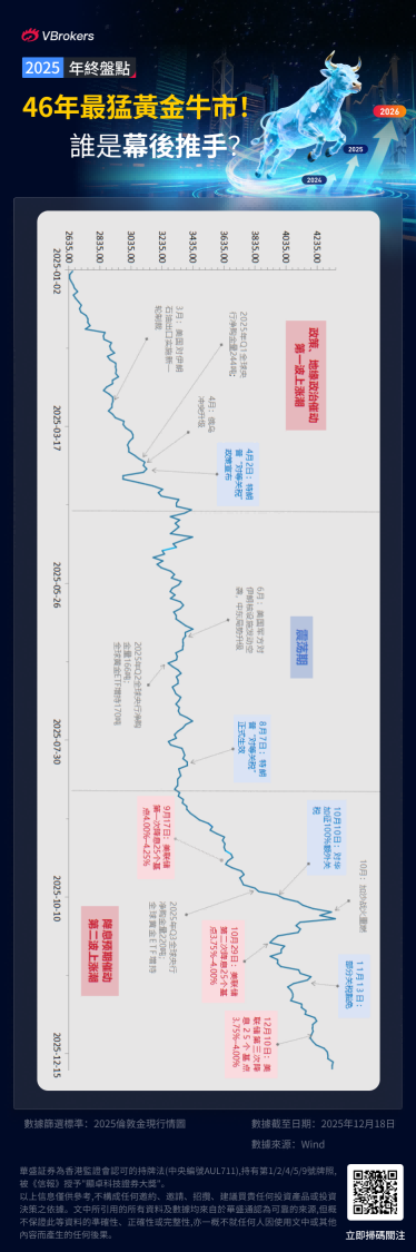 2025年,美联储在9月、10月和12月连续三次降息,累计下调利率75个基点。降息直接压低了持有黄金(不生息资产)的“机会成本”。特别是在9月首次降息落地后,金价应声大涨18%,直接冲上10月末的历史新高。