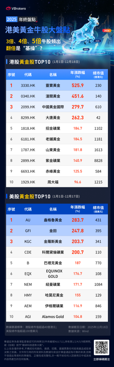 这场盛宴背后,港美市场的黄金股更是涨到“离谱”,3倍、4倍、5倍大牛股层出不穷。这波史诗级行情究竟由谁推动?狂欢之后,2026年的黄金牛市是持续疯狂,还是戛然而止?