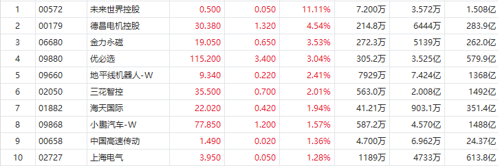 机器人概念股今日普涨,截至发稿,优必选涨超3%,地平线机器人-W、三花智控涨超2%。