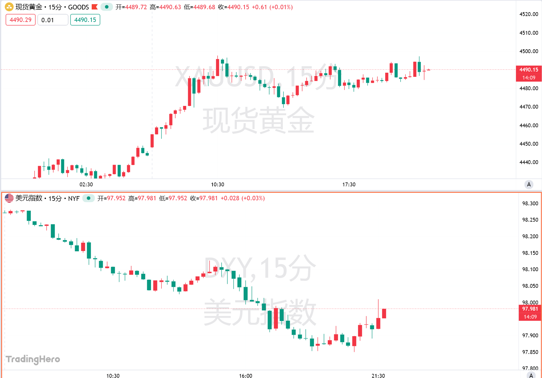 美国GDP数据公布后,现货黄金短线走低5美元。美元指数小幅走高10点。