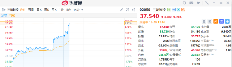 华盛资讯12月30日讯,港股机器人概念股午后持续拉升!三花智控飙升近10%,越疆、优必选涨超7%,蓝思科技涨近4%。
