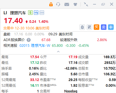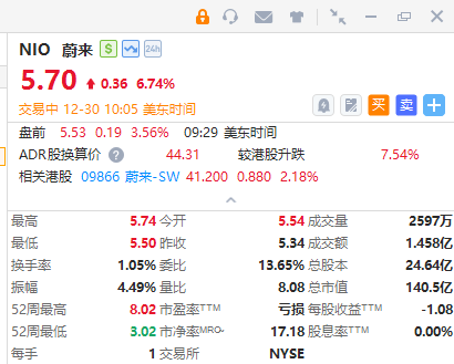 华盛资讯12月30日讯,中概新能源车股齐涨,蔚来涨近7%,小鹏汽车涨5.9%,理想汽车涨近1.5%,两部门发布关于明年实施“两新”政策的通知;