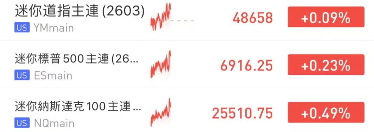 华盛资讯1月5日讯,盘前三大股指期货齐涨,截至发稿,纳指期货 $NQmain 涨0.49%,标普500期货 $ESmain 涨0.23%,道指期货 $YMmain 涨0.09%。