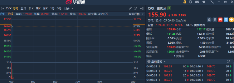 石油股盘前走高,雪佛龙、康菲石油涨约9%,埃克森美孚涨超3%;消息面上,特朗普称美国将接管委内瑞拉,同时OPEC+仍决定维持原油产量稳定。