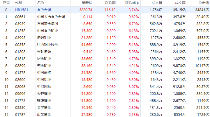 华盛资讯1月6日讯,港股有色金属概念股盘中持续走强!洛阳钼业、江西铜业股份涨超5%,招金矿业、中国宏桥涨超4%,中国铝业、中铝国际涨超3%。