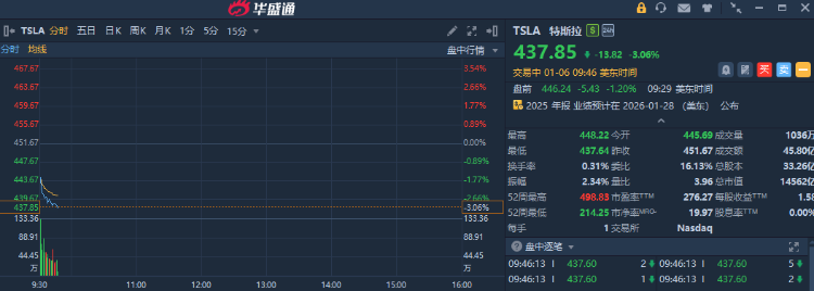 华盛资讯1月6日讯,美股大型科技股走势分化,英伟达、亚马逊涨近1%,谷歌微涨;特斯拉跌逾3%,苹果跌超1%,Meta、微软盘中小幅下跌。