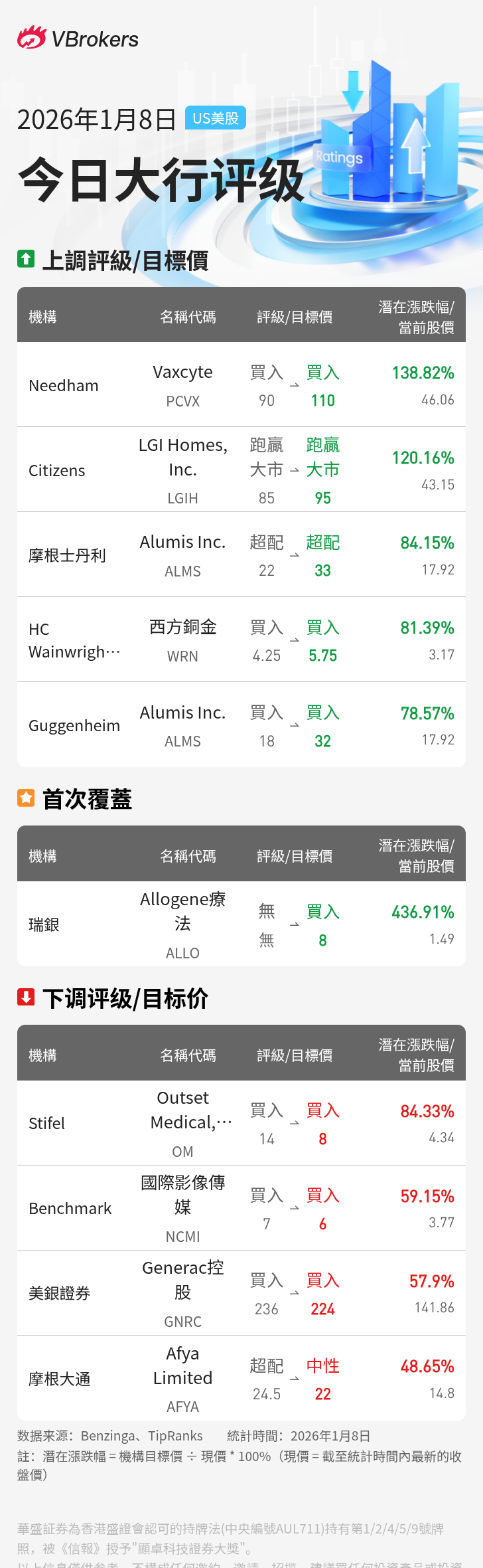编者按:每日追踪华尔街最新评级与目标价,挖掘潜力股投资机会。