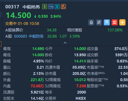 军工股逆市上涨,截止发稿,中船防务涨近4%,中航科工涨超3%。