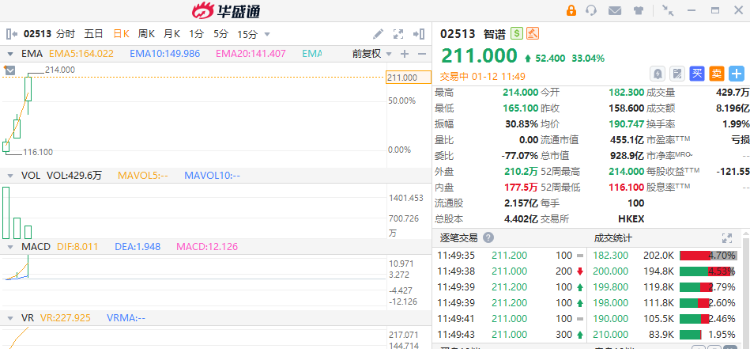 今日早盘,港股持续走高,恒生科指涨超2%,科技股领跑,阿里巴巴-W持续拉升涨近4%,快手-W、美团-W、商汤-W均涨近6%。“AI大模型第一股”智谱涨超33%,MINIMAX-WP涨超21%,美图公司、微盟集团等跟涨。