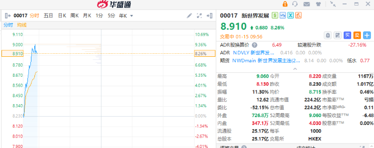 金吾财讯 | 香港地产股普升,新世界发展涨8%,新鸿基地产涨超2%、恒隆地产(00101)涨1.2%,希慎兴业(00014)涨1.09%,九龙仓置业(01997)涨0.98%,恒基地产(00012)涨0.51%。