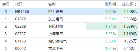 1月16日消息,港股电力设备股盘初冲高,东方电气涨超10%,哈尔滨电气、上海电气涨5%。