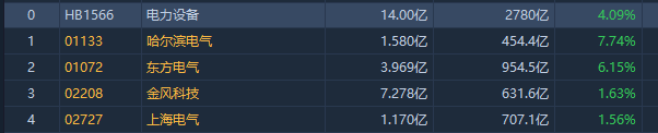 今日,港股电力设备股盘中逆势走强,哈尔滨电气涨超7%,东方电气涨超6%,金风科技、上海电气涨超1%。消息面上,据中国电力报,“十五五”时期,国家电网公司固定资产投资预计达到4万亿元,较“十四五”投资增长40%,以扩大有效投资带动新型电力系统产业链供应链高质量发展。
