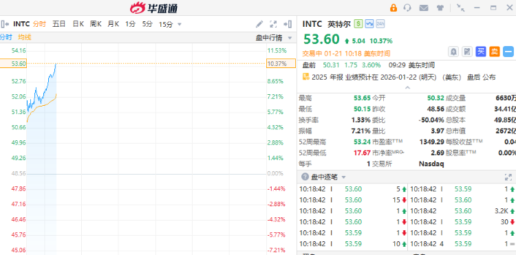 CPU概念股早盘集体大涨!英特尔涨超10%, $AMD 涨超6%。