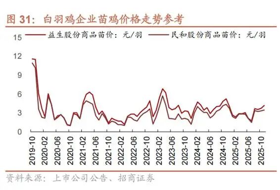 转折点出现在8月,在此前长时间低价的挤压下,供给端的收缩开始集中显现。毛鸡价格在短时间内快速上行,山东部分地区涨幅显著,毛鸡价格最高飙升至3.7元/斤,益生股份和民和股份的鸡苗报价,更是从1.5元/只涨至4.2元/只,依然供不应求。