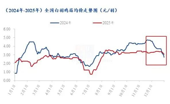 随后,价格并未沿着单一方向继续上行,而是重新回到震荡区间。直到11月末,随着前期供给收缩效应进一步传导,白羽鸡价格再次启动一轮持续拉涨,并在12月刷新年内高点,部分区域甚至出现加工端集中抢鸡的情况。