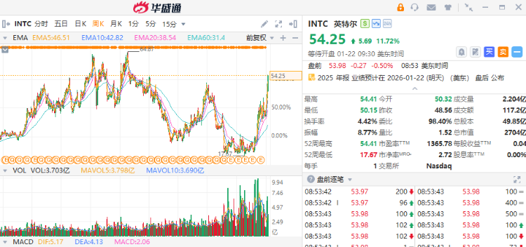 过去两年中,英特尔有63%的时间超过了每股收益预期,有75%的时间超过了营收预期。