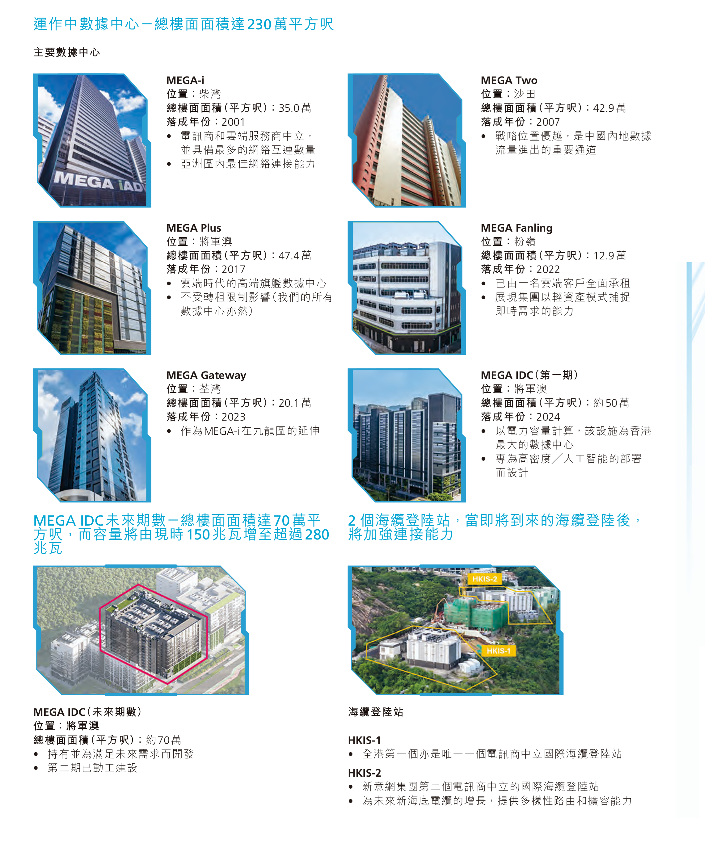 从以上观点来看,由于人工智能应用程式仅处于初始上升阶段,我们认为香港数据中心市场具有长期增长潜力。在我们所有数据中心中,我们已预先构建了可容纳更高电力需求的基础配置,以应对人工智能应用增长带来的负荷。