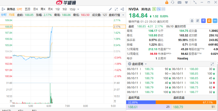 1月23日,英伟达盘前拉升涨超2%,据路透社援引彭博社报道,英伟达(NVDA.US)首席执行官黄仁勋(Jensen Huang)计划于1月下旬访问中国,以寻求重新开放该英伟达人工智能芯片的关键市场。预计黄仁勋将出席2月农历新年假期前的公司活动,并可能访问北京。