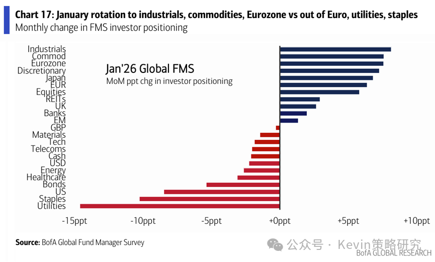 6. 1月份投资者增配工业、商品和欧股,减配公用事业、必需消费品和美股