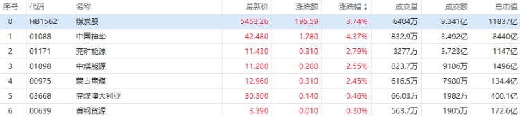 煤炭股午后多数上扬,截至发稿,中国神华涨超4%,兖矿能源、中煤能源涨超2%。