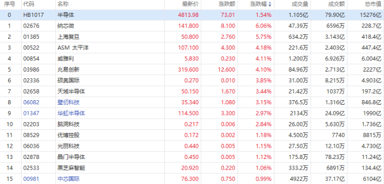 继晶圆代工、封测报价纷纷上扬之后,芯片设计作为半导体产业链的重要一环,其报价也有望迎来上涨。或受益于此,港股半导体股午后强势走高,纳芯微涨超6%,上海复旦涨超5%,华虹半导体涨近3%,中芯国际涨近1%。