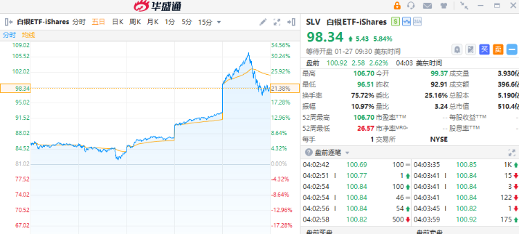 存储概念反弹,美光科技涨近3%,SanDisk $SNDK 涨超2%;银价高位巨震,白银ETF $SLV 盘前再升2%,两倍做多白银ETF $AGQ 涨超4%。
