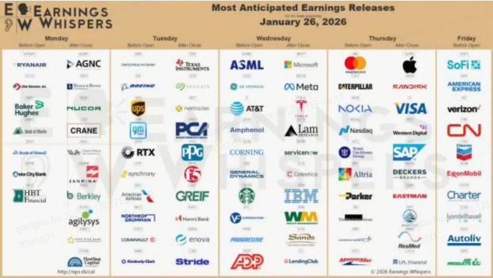 关税动荡导致市场在上周开始大幅下跌,原因是针对格陵兰岛问题的反击,欧洲面临新的关税威胁,加剧了人们对全球贸易战的担忧。在市场波动剧烈、新闻报道节奏飞快的背景下,黄金和白银依然备受追捧,黄金价格在周末突破了5,000美元大关。然而,一如既往,达沃斯世界经济论坛的气氛较为平静,北约就格陵兰岛问题达成的框架协议也让交易员们对市场前景持更乐观的态度。