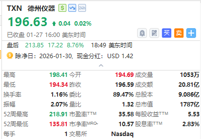 业绩会直播:2026-01-28 09:30:00 【德州仪器公司 (TXN.US) 2025年第四季度业绩电话会】