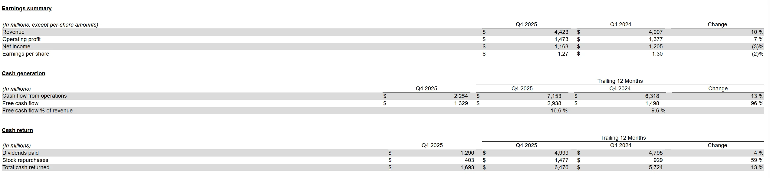 美东时间1月27日盘后,德州仪器公布2025年第四季度业绩:2025年第四季度营收为44.2亿美元,同比增长10%,但环比下降7%,净利润为11.6亿美元,每股收益(EPS)为1.27美元。该季度的每股收益包括未包含在最初指引中的6美分的减少额。在过去12个月内,公司产生了72亿美元的经营现金流,自由现金流为29亿美元。