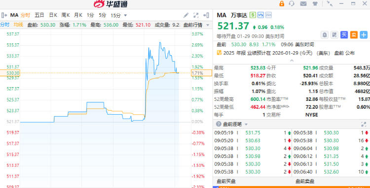 万事达卡公司(MA.US)第四季度盈利表现超出市场预期,这得益于消费者在复杂宏观环境下对其支付网络的持续依赖。