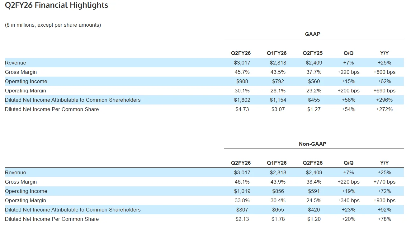 2026财年第二季度亮点: