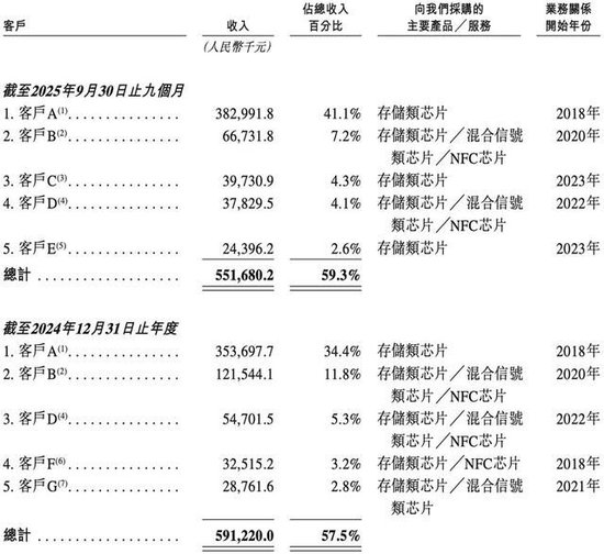 2023年、2024年、2025年1-9月,前五大客户收入分别占聚辰股份总收入的57.7%、57.5%、59.3%,最大客户收入分别占其总收入的22.9%、34.4%、41.1%。